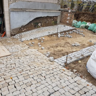 Einfahrt Pflasterarbeit mit Naturstein
