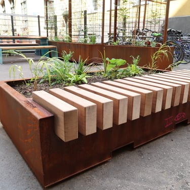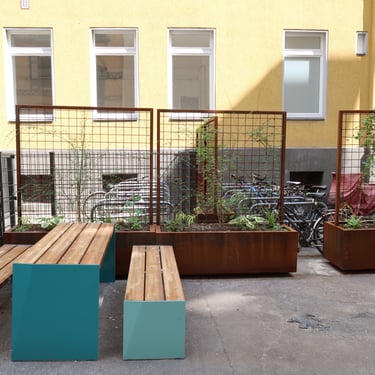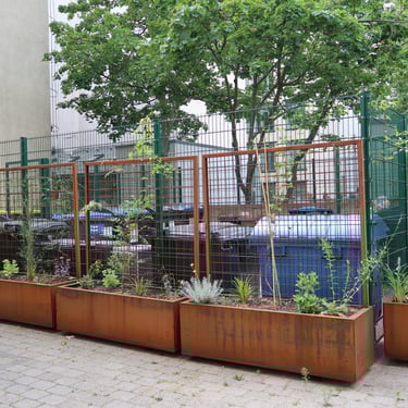 Kübelbepflanzung, Stadtmobiliar, Fahrradständer, gewerblicher Müllplatz und Gestaltung urbaner Lebensräume